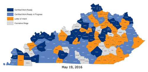 Currently, there are 29 counties in Kentucky that have achieved Work Ready Communities certification by the KWIB, and there are 39 counties in progress to become Work Ready Communities.