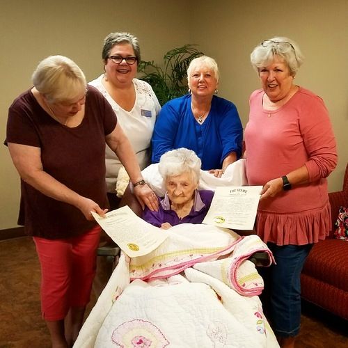Cindy Tabor, Pennyrile Long Term Care Ombudsman presented centenarian, Marguerite Fox with citations from Representative Will Coursey and Senator Stan Humphries in recognition of “Celebrating Centenarians” on Wednesday, July 26, 2017. Ms. Fox is 104 years old.