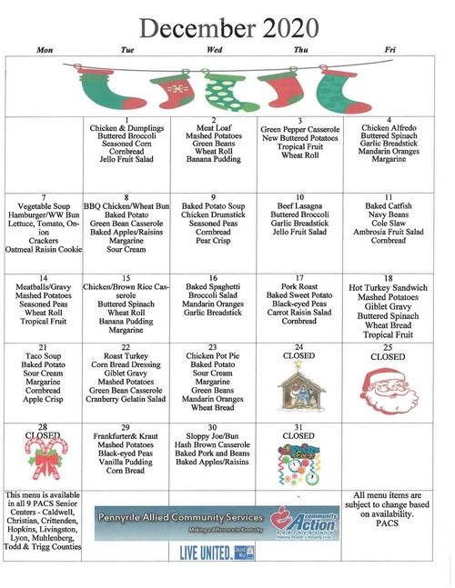 If you are 60 or over and need a meal contact the Pennyrile Aging and Disability Resource Center at 866-844-4396.