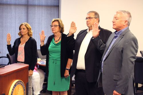 Judge Executive Steve Tribble, PeADD Nominating Committee Chair, administered the Oath of Office to officially install the new PeADD Officers who were present: Judge Executive Hollis Alexander, Trigg Co. (Board Chair), Mayor Jan Yonts, City of Greenville (Vice Chair), Crissy Carter, Livingston Co. (Secretary), and Judge Executive Todd Mansfield, Todd Co. (Treasurer). Judge Hollis Alexander chaired the remainder of the meeting as the FY '23 Board Chair.