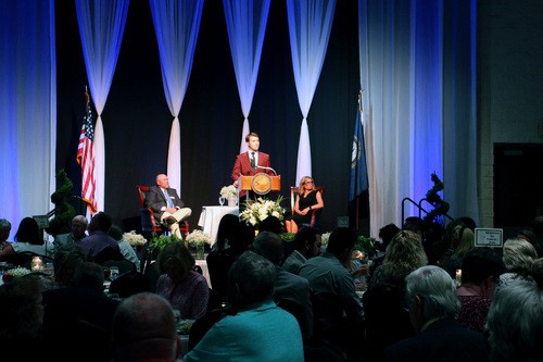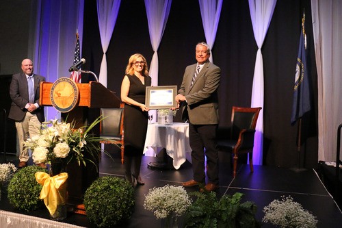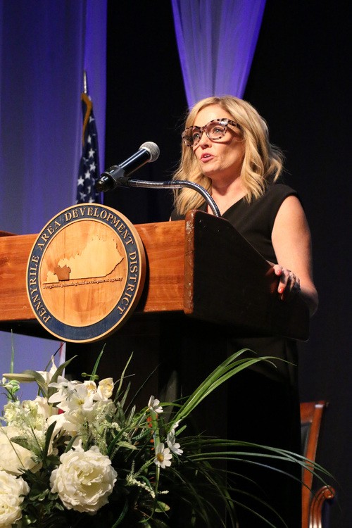 Connecting the Pennyrile was the theme of the night at the Pennyrile Area Development District’s (PeADD) 54th Annual Dinner Meeting held June 12, 2023, at The Bruce Convention Center in Hopkinsville, KY. The evening was sponsored by Planters Banks Hopkinsville and under the chairmanship of Crissy Carter, PeADD Board Chair and Citizen Member representing Livingston County. A crowd of over 400 state and local officials, legislators, business and civic leaders, and others from throughout the Pennyrile filled the room to celebrate the accomplishments in the region from the past year and to honor the late John Walton with the John C. Mahre Regionalism Award.