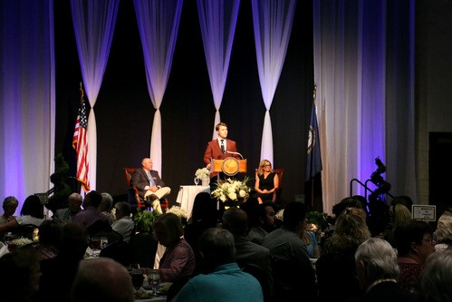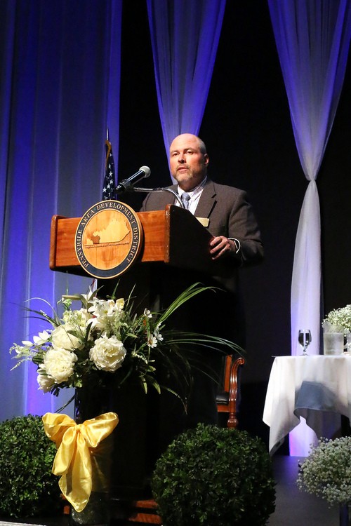 Jason Vincent, PeADD Executive Director, cited the theme of the night, “Making Connections,†declaring how PeADD does just that. He thanked everyone for helping the organization to do so. He went on to thank Planters Bank for their sponsorship, along with the staff at The Bruce, and Lieutenant Dan for his audio and visual assistance. Mr. Vincent thanked Melissa Thompson, the Communications Director at PeADD, for her talent and efforts in coordinating the evening. He also thanked the General Assembly for their contributions in growth of the Pennyrile region. Mr. Vincent also thanked the PeADD Board members and committee/council members for their continued dedication to PeADD’s efforts. Lastly, he recognized and thanked the PeADD staff for their accomplishments, declaring his pride in them and their work.