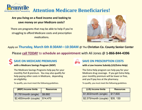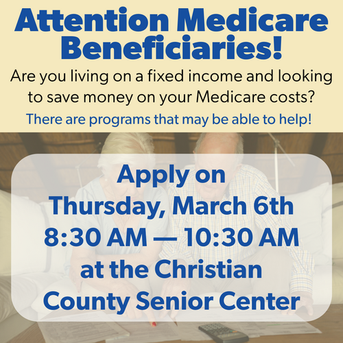Apply on Thursday, March 6th 8:30AM—10:30AM @ The Christian County Senior Center